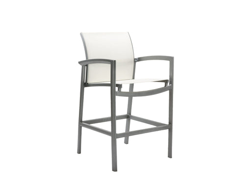 The Corsica Sling Bar Stool is crafted from durable powder-coated aluminum and features flowing curves and end-of-arm rolled detailing. The high-ba...