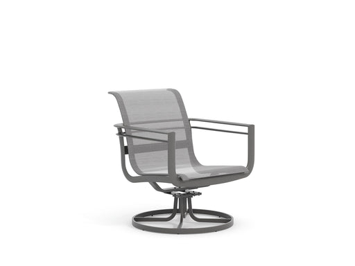 The Icon Sling High Back Swivel Rocker Dining Chair adds motion and comfort to the dining experience. Built with an extruded aluminum frame, it off...