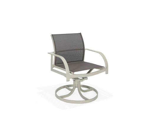 Enhance your outdoor dining experience with the stylish and durable Coral Reef Sling Swivel Rocker Dining Chair. Crafted from a flat oval aluminum ...