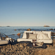 The Salto Outdoor Sofa is part of Skargaarden’s refined lounge and dining collection designed for truly maintenance-free outdoor living. Featuring sleek, gently curved aluminum frames and premium Sunbrella-covered cushions, the Salto range embodies Scandinavian minimalism with everyday practicality.