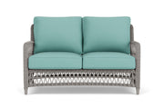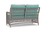 Bring coastal charm and timeless relaxation to your outdoor haven with the Mackinac Loveseat by Lloyd Flanders. Inspired by classic seaside living, the Mackinac Collection blends an open-weave design, nautical teak accents, and deep, luxurious seating for a look that is both romantic and enduring. Finished in warm Putty Custom Vinyl, this loveseat offers exceptional durability and refined texture, making it perfect for porches, patios, sunrooms, and garden lounges. With its inviting proportions and elegant craftsmanship, the Mackinac Loveseat delivers comfort and beauty that lasts for seasons to come.