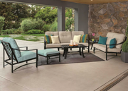 Designed by Peter Homestead, the Kenzo Cushion Love Seat exhibits simple, graceful lines and a wide frame. The Kenzo Cushion Love Seat features the exclusive RELAXplus® technology for optimal comfort, longevity, and mildew resistance. The high-back design of the outdoor love seat delivers sink-in comfort for relaxation all day long.