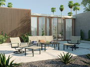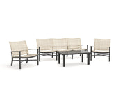 The Jasper weave has a sophisticated, delicate look combined with sturdy construction. All-weather wicker with a textural, multi-color finish in an aged beechwood tone is woven in a breathable open pattern for the airy look of classic cane or rattan without the worry of cracks and fading. The aluminum extrusion frames and angled silhouette give Jasper modern appeal with timeless detail.